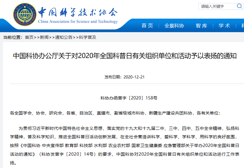 凯发k8国际科普月开放行动获评全国科普日优秀活动