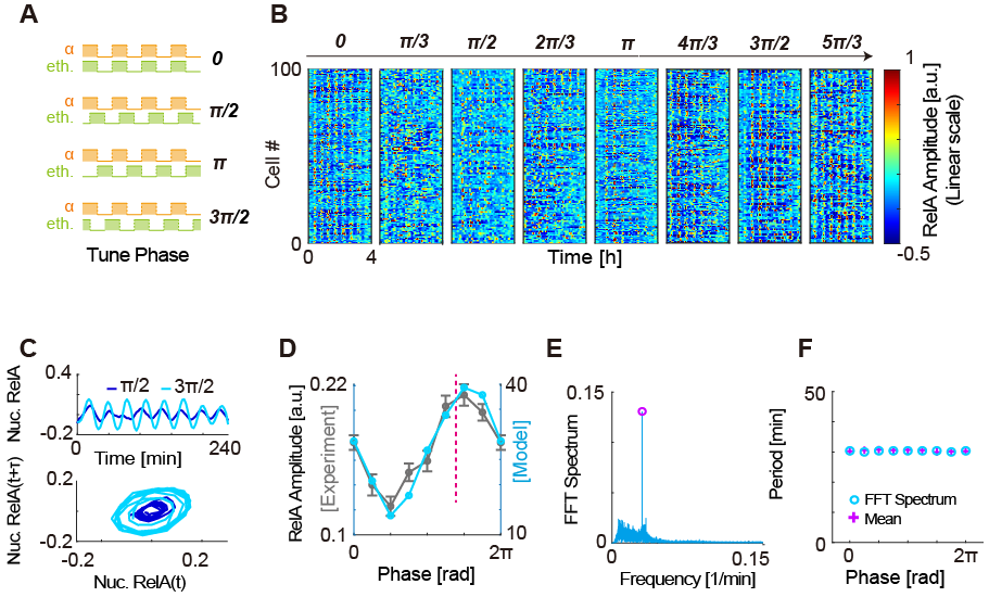 最后,顺利获得引入下游荧光报告基因,作者在实验和模型中确认了这种相位调整带来的振幅变化的确能造成基因表达水平的差异。这种差异与振荡的基线水平、振荡周期均无关。