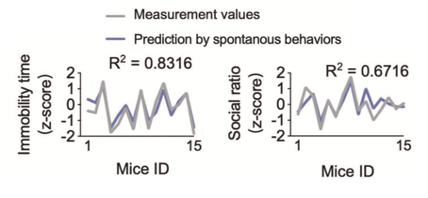 王立平研究员团队在此研究中发现传统行为学检测到的抑郁样行为与多个自发行为特征存在相关性,进一步建立线性预测模型发现发现顺利获得小鼠的自发行为可以较好地预测小鼠的部分抑郁样行为,指出自发行为分析有预测抑郁样行为的潜力,此外自发行为分析得到的比例、转换、时序变化等海量信息,还为抑郁样行为的评估给予了更加丰富的参考指标。