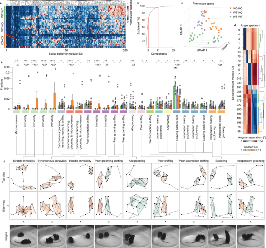 该技术实现了自由社交动物模型的无标签、高精度三维姿态估计、零样本身份识别和精细化社交行为分类,真正解决了精确检测动物社交行为的多个重要难点,有望为社交行为神经环路机制的研究带来研究范式上的变革创新。该工作为科技创新2030-“脑科学与类脑研究”重大项目“社交障碍的神经环路机制与干预研究”的实施,给予了重要的精细行为数据分析支撑