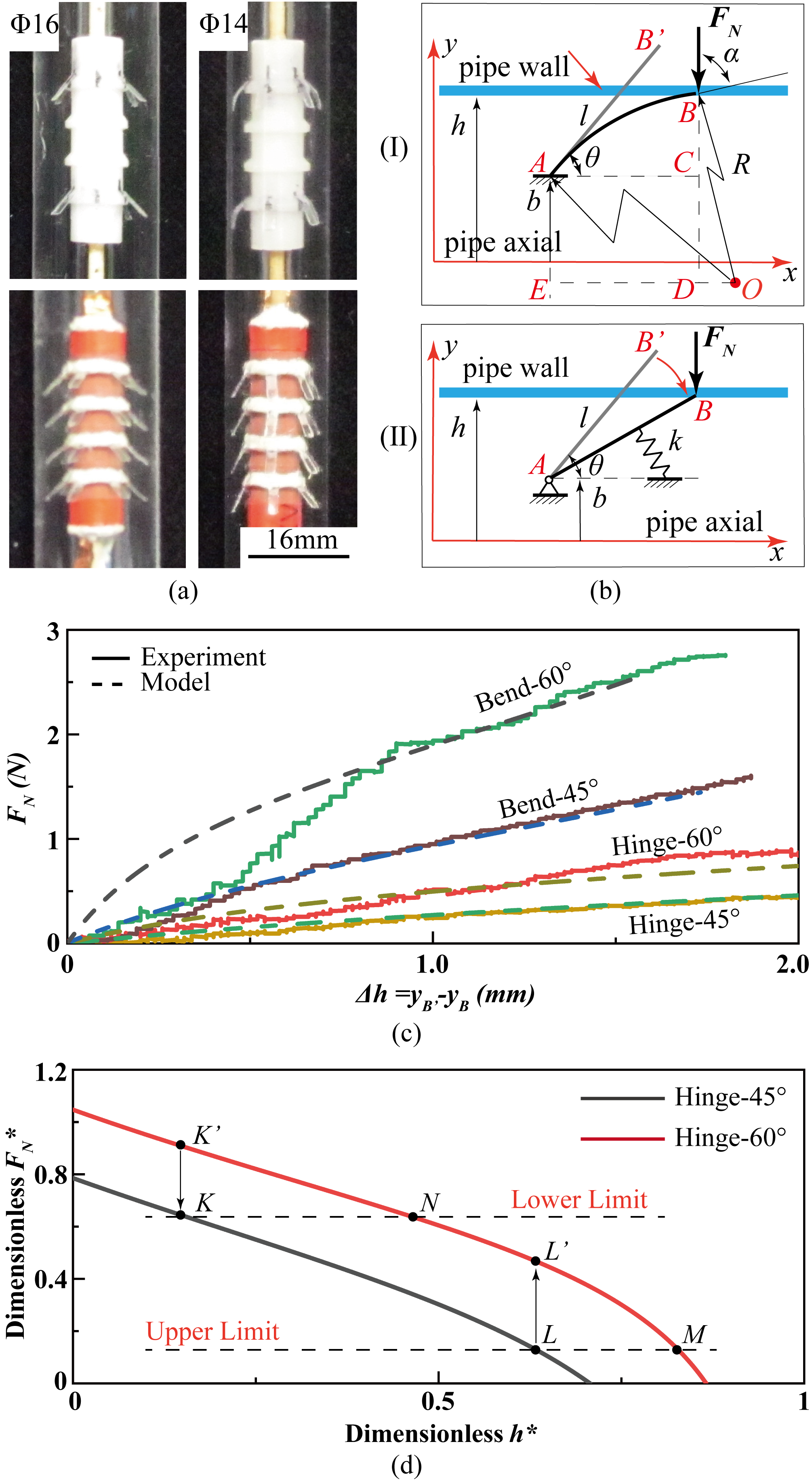 2)低管径敏感性:柔性铰链鬓毛旋转变形替代传统鬓毛的弯曲变形,降低了鬓毛与管壁之间的法向约束力及相应的正向运动摩擦力。