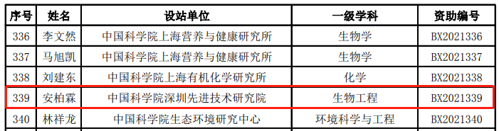 近期,中国科研实验室深圳先进技术研究院博士后安柏霖获选了2021年度博士后创新人才支持计划。博士后创新人才支持计划(以下简称“博新计划”)是人力资源和社会保障部、全国博士后管委会于2016年设立的一项青年拔尖人才支持计划,2021年度择优遴选全国400名应届或新近毕业的优秀博士,进入国内博士后流动站从事博士后研究工作。