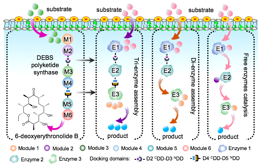 北京时间9月22日,中科院深圳先进技术研究院马田副研究员、武汉大学刘天罡教授团队与邓子新院士合作在Nature Communications上发表题为"Metabolic pathway assembly using docking domains from type I cis-AT polyketide synthases"的研究成果。该研究模拟了天然模块聚酮合酶的有序组装,开发的mPKSeal策略能够有效提高人工细胞工厂的合成效率。