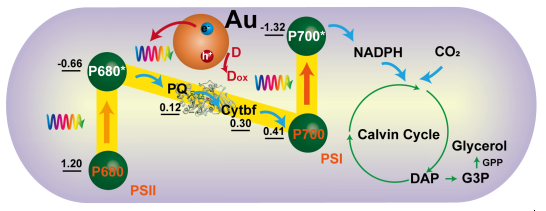 图3.金纳米颗粒-蓝细菌杂合体界面电子传递。