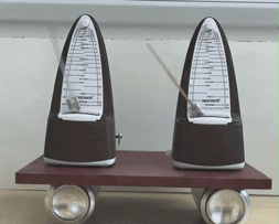 两节拍器顺利获得底部木板相互作用形成反相同步(图片来自网络)